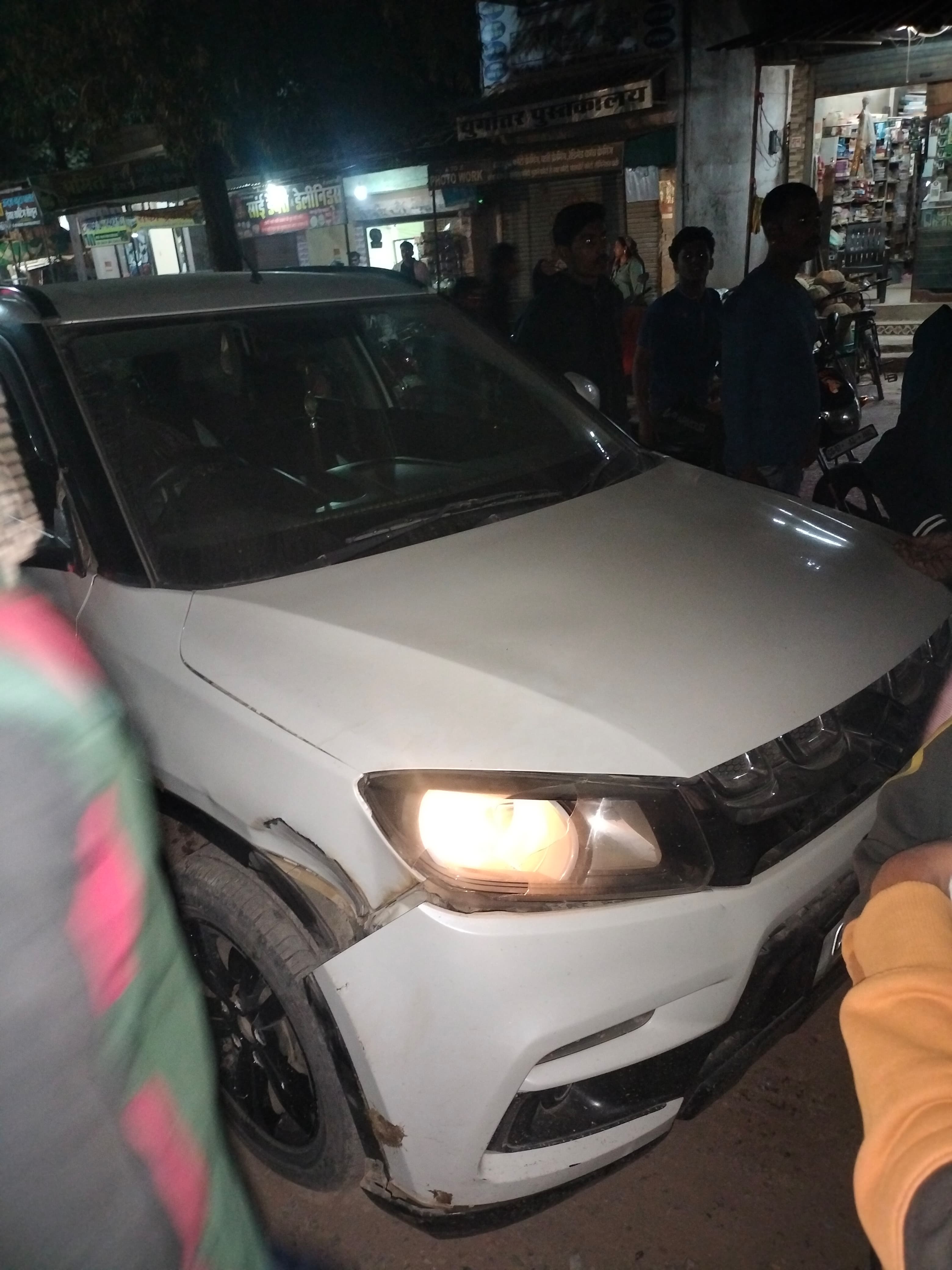 शामिल वाहन: टक्कर में दो वाहन शामिल थे: सफेद रंग की मारुति सुजुकी विटारा ब्रेजा कार (सामने से क्षतिग्रस्त):